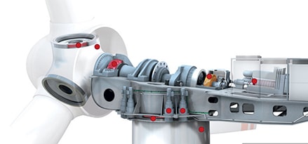 Olio sintetico peringranaggi di turbine eoliche che contribuisce a prolungare la durata delle attrezzature; è certificato da organizzazioni indipendenti come privo di effetti di formazione delle cricche bianche (WEC) provocate dall'olio.